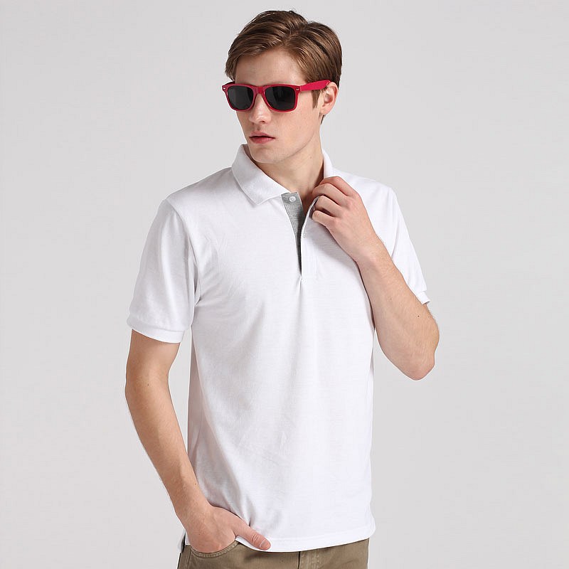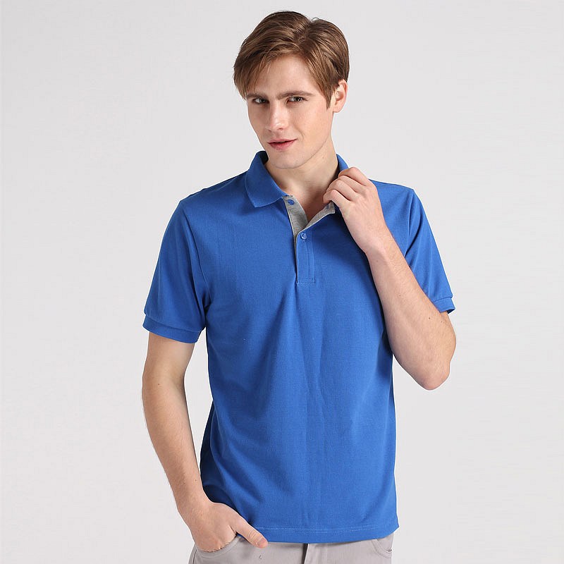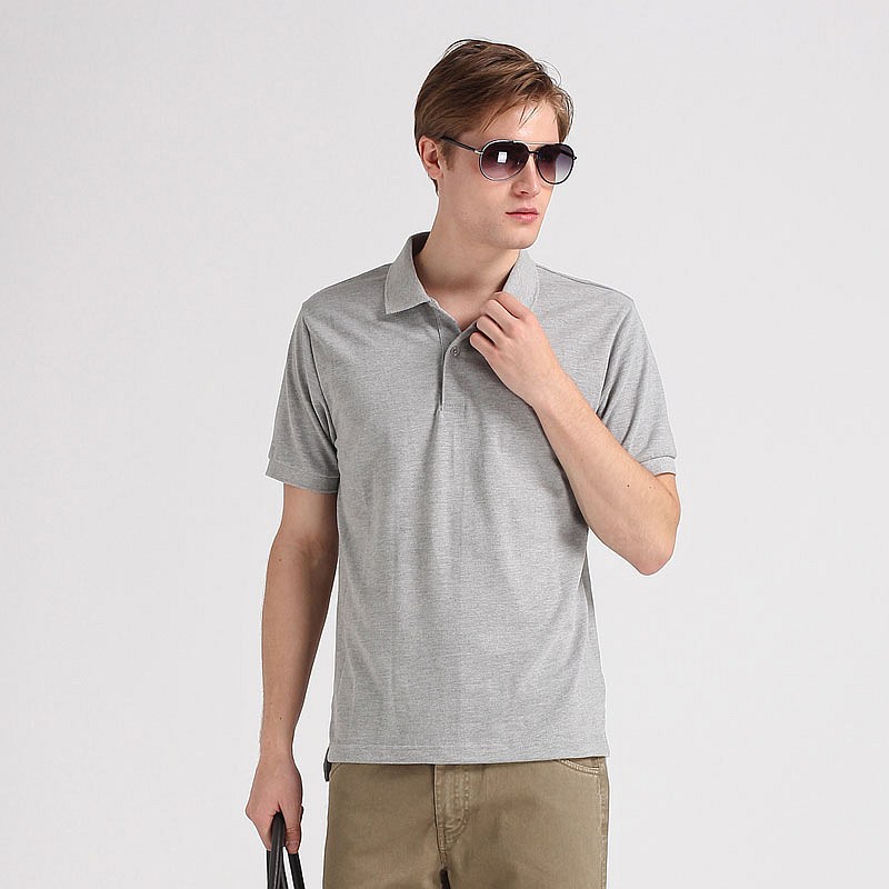 花灰色衣領(lǐng)袖口撞色,翻領(lǐng)短袖T恤衫,時(shí)尚款式定制,精梭純棉品質(zhì)