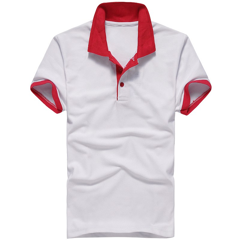 白色領袖撞色,男女時尚T恤款式定制,可刺繡公司標志