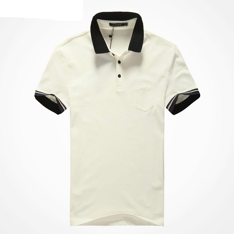 白色領(lǐng)袖撞色,男女時尚T恤款式定制,可刺繡公司標(biāo)志