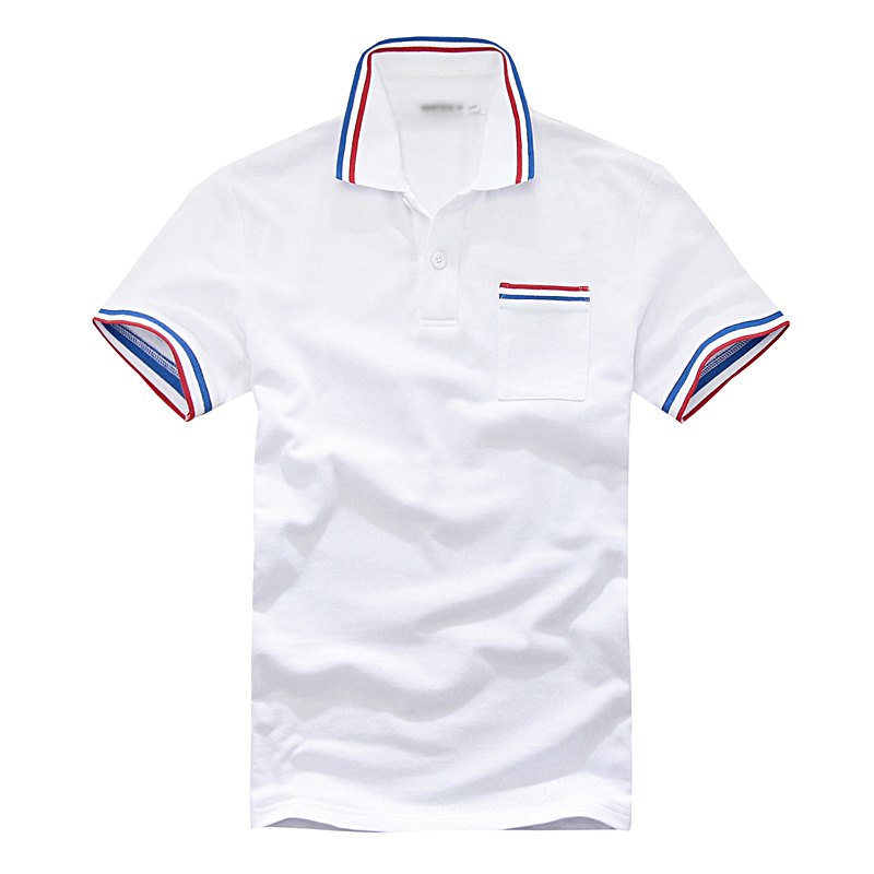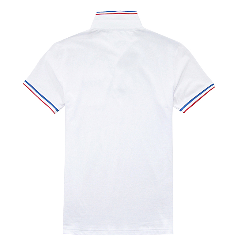 白色領(lǐng)袖撞色,男女時(shí)尚T恤款式定制,可刺繡公司標(biāo)志