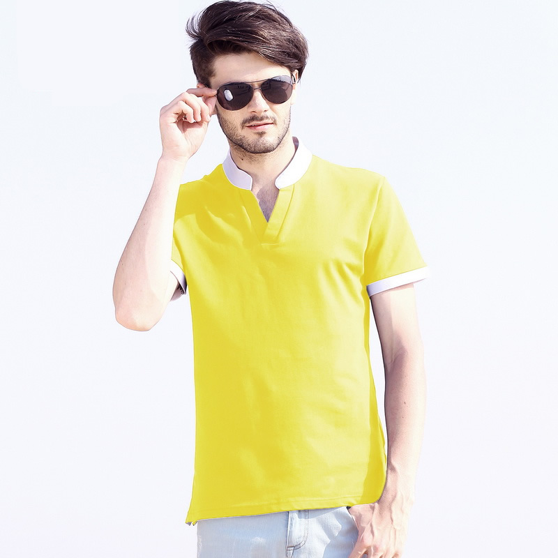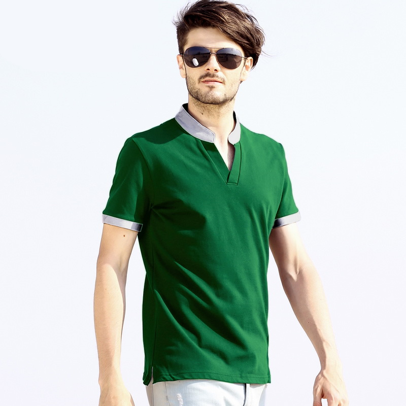 花灰色衣領(lǐng)袖口撞色,翻領(lǐng)短袖T恤衫,時尚款式定制,精梭純棉品質(zhì)