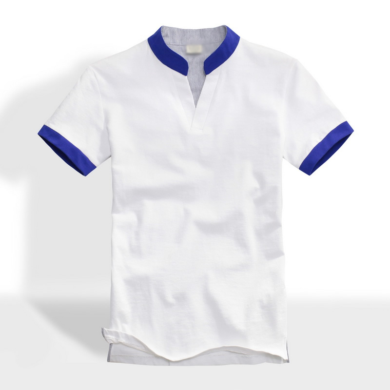 白色領(lǐng)袖撞色,男女時尚T恤款式定制,可刺繡公司標志