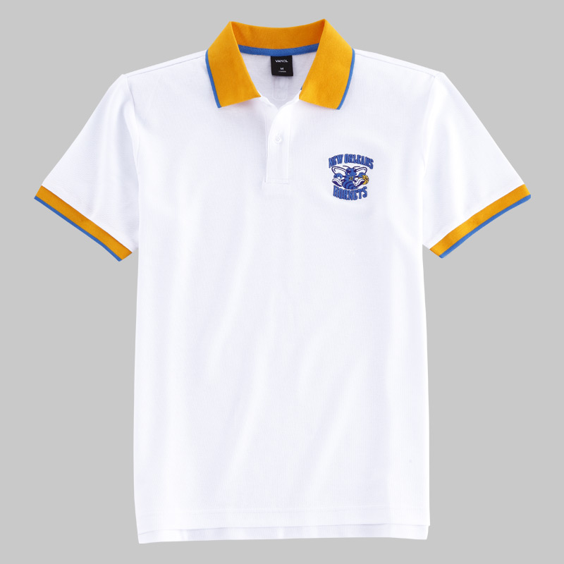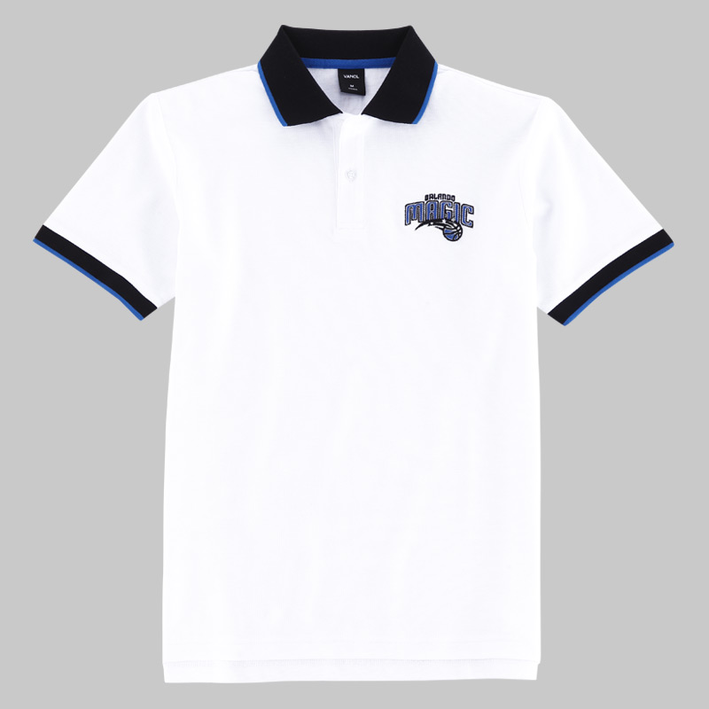 白色領(lǐng)袖撞色,男女時(shí)尚T恤款式定制,可刺繡公司標(biāo)志