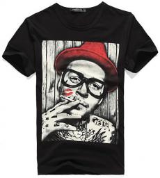 【定做】黑色韓版潮流男士圓領(lǐng)文化衫