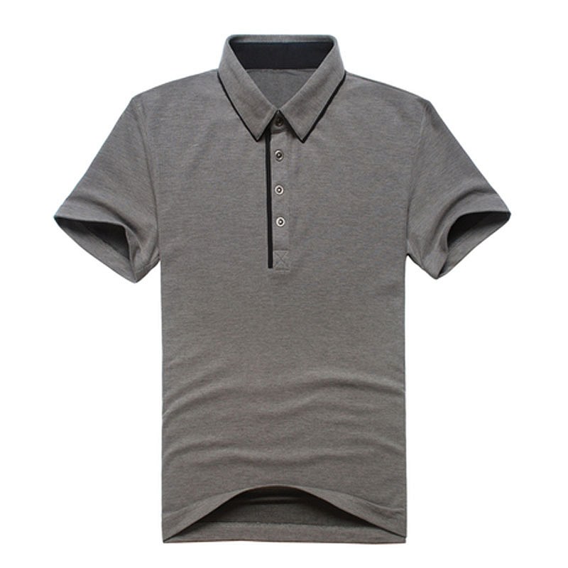 > 高檔棉灰色時(shí)尚翻領(lǐng)T恤衫款式圖片