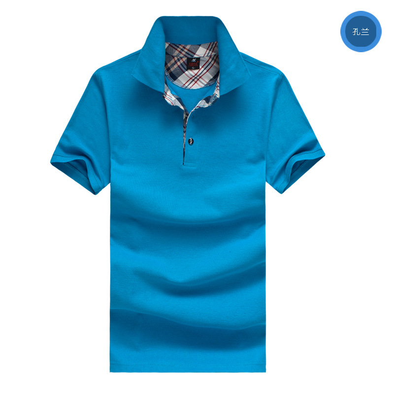 翻領(lǐng)短袖t恤衫,襯衫格子衣領(lǐng)定制,幾十個(gè)顏色可選,刺繡企業(yè)logo