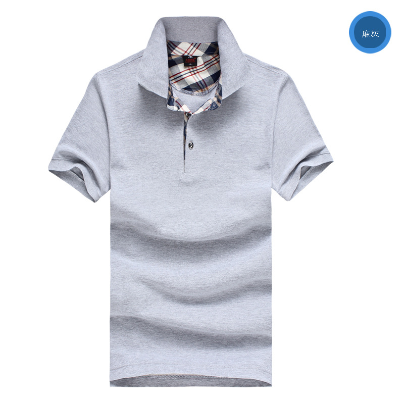 花灰色衣領(lǐng)袖口撞色,翻領(lǐng)短袖T恤衫,時(shí)尚款式定制,精梭純棉品質(zhì)