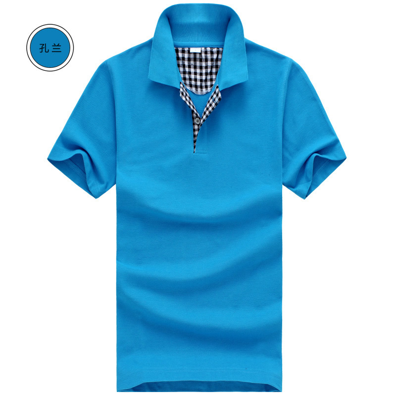 翻領(lǐng)短袖t恤衫,襯衫格子衣領(lǐng)定制,幾十個(gè)顏色可選,刺繡企業(yè)logo