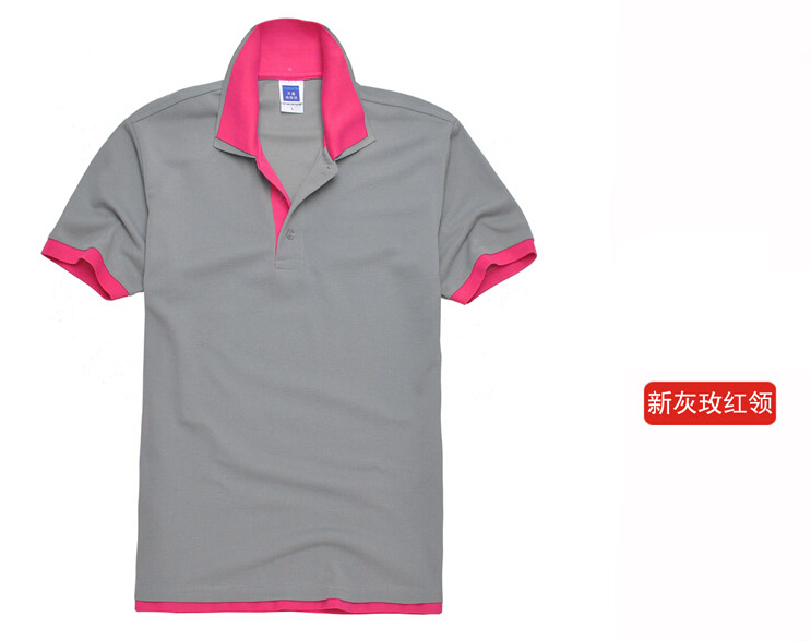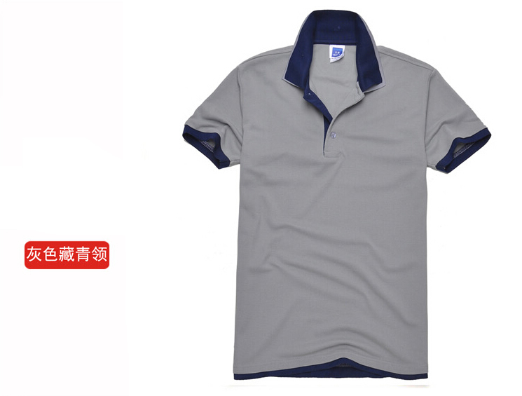 花灰色衣領(lǐng)袖口撞色,翻領(lǐng)短袖T恤衫,時尚款式定制,精梭純棉品質(zhì)
