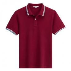 大紅色珠地純棉POLO衫,領(lǐng)袖間條撞色,門襟撞色男女款定制