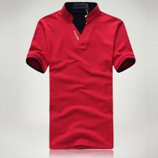 時(shí)尚紅色立領(lǐng)短袖禮品T恤衫加工