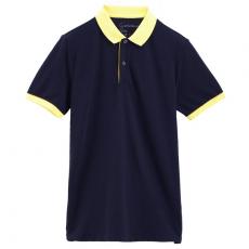 【定制】寶藍色男士T恤衫 衣領袖口撞色款式