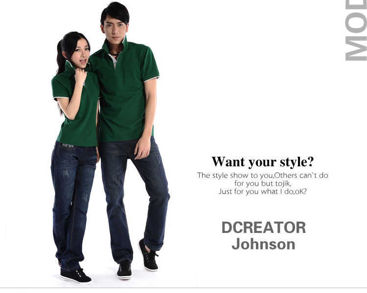 墨綠色珠地純棉,領(lǐng)袖白色間條撞色款式定制 1