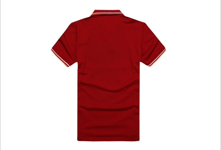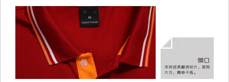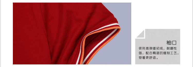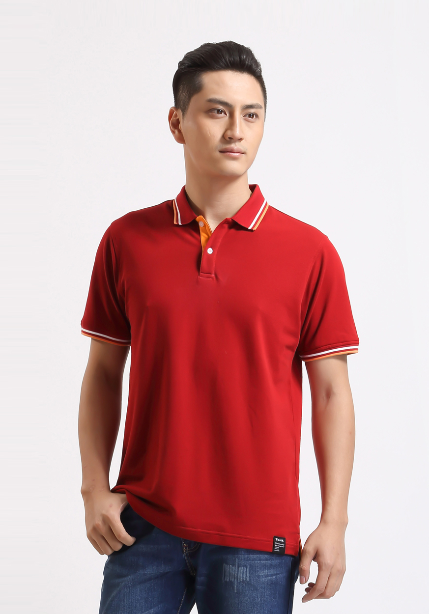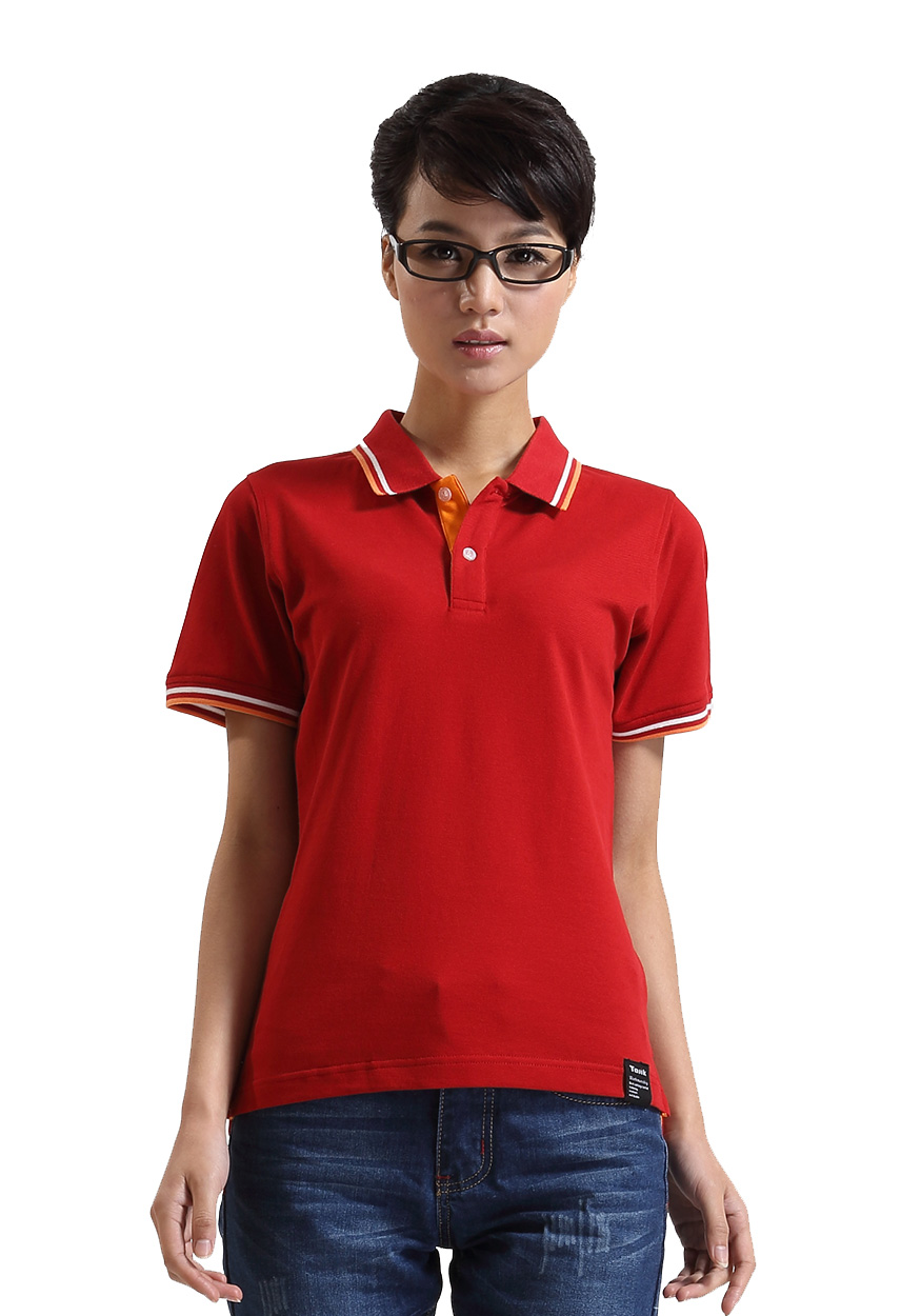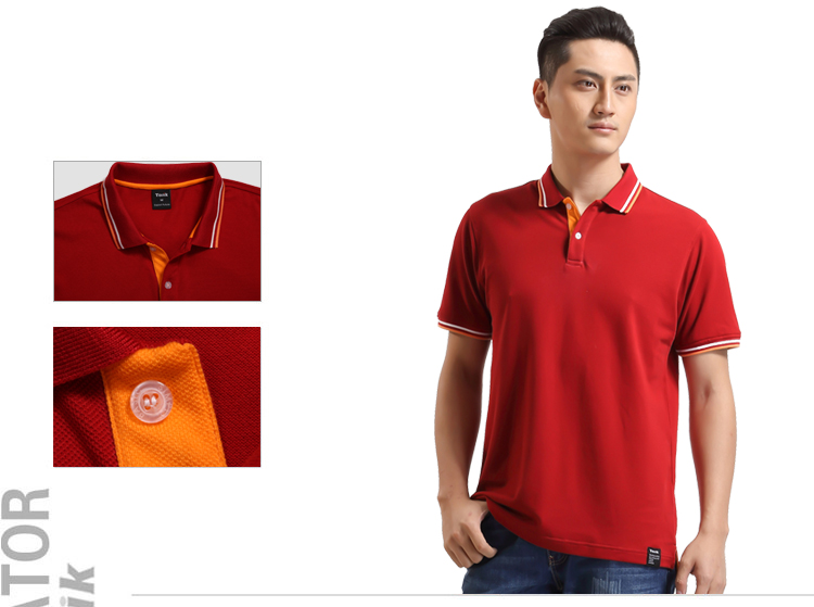 > 大紅色珠地純棉POLO衫,領袖間條撞色,門襟撞色男女款定制