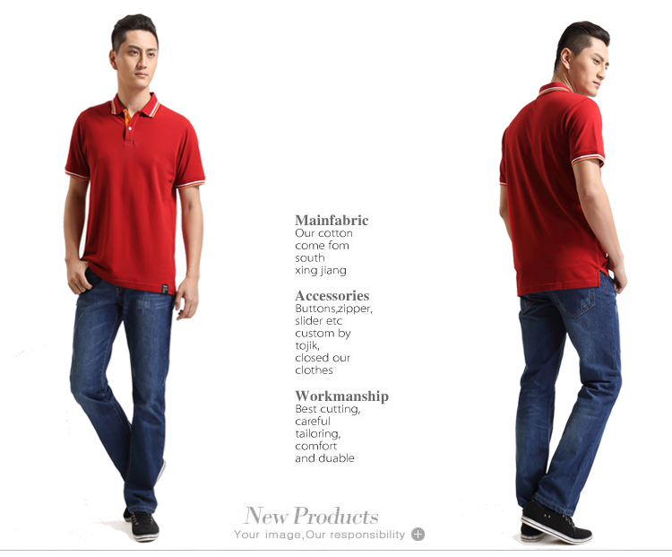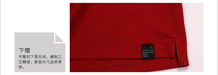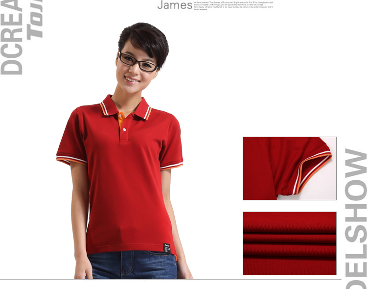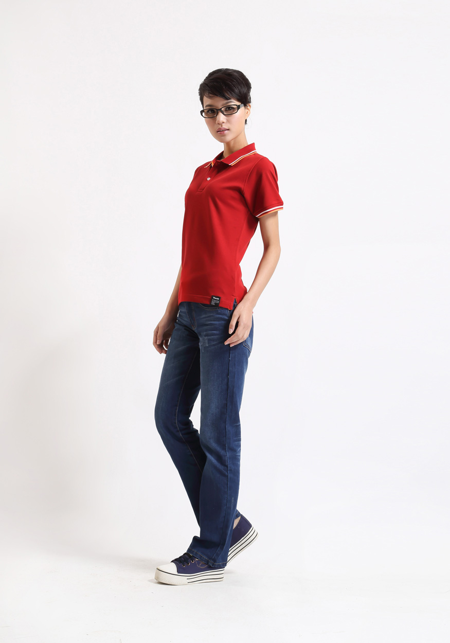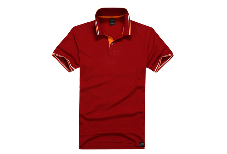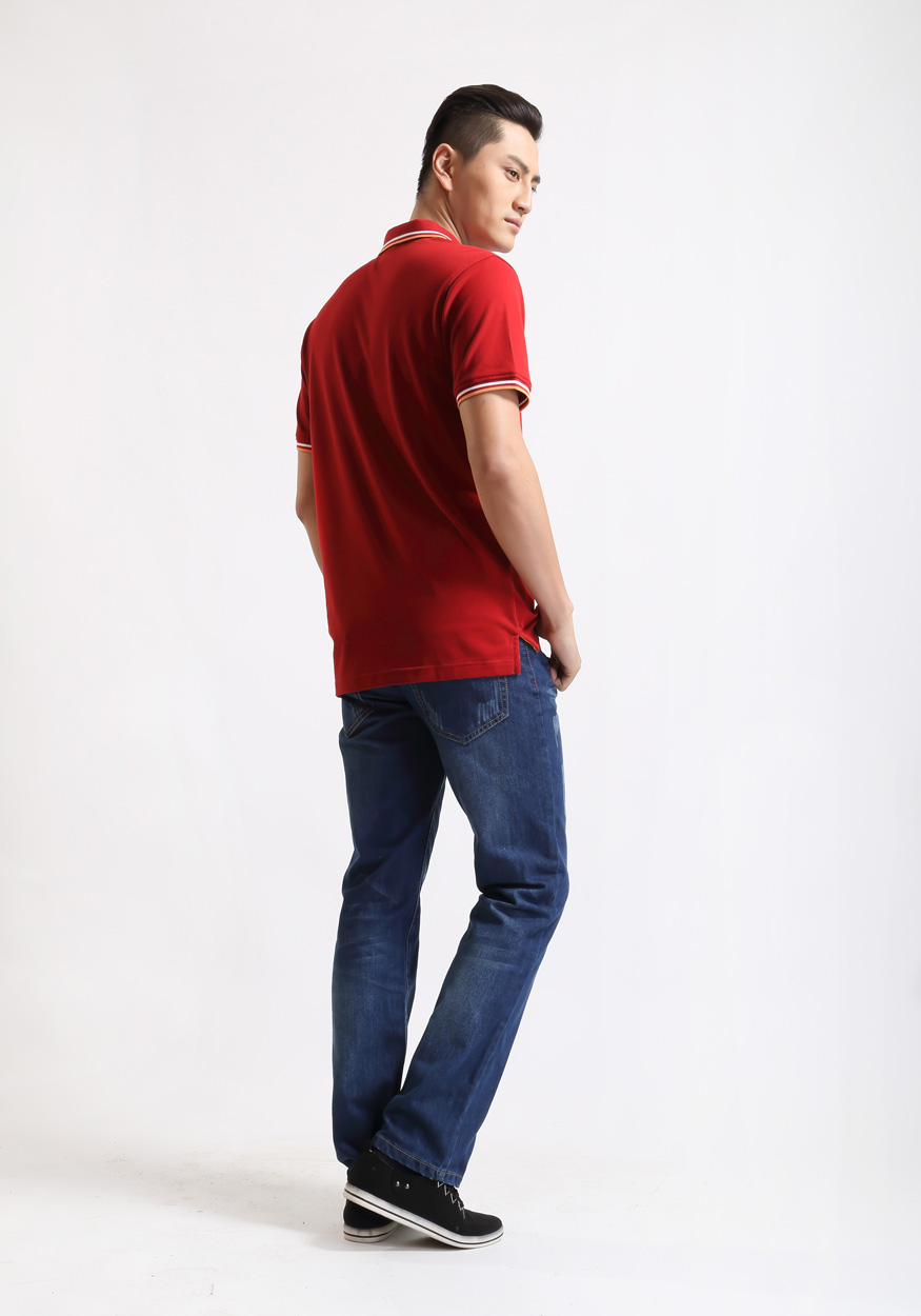 > 大紅色珠地純棉POLO衫,領袖間條撞色,門襟撞色男女款定制