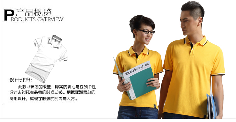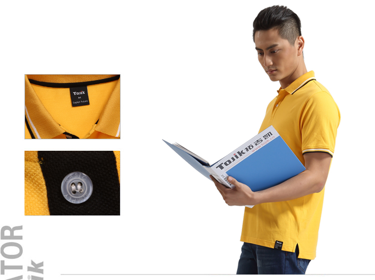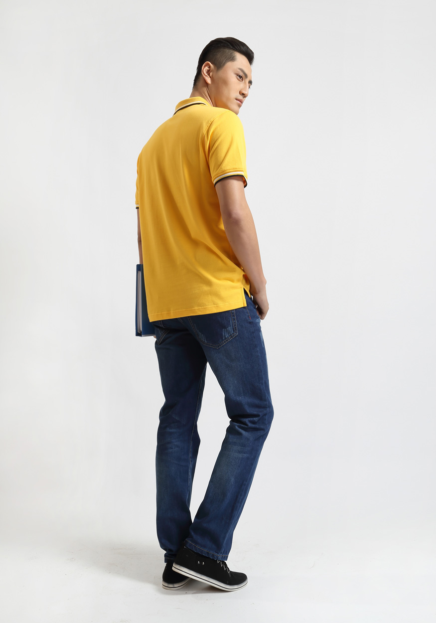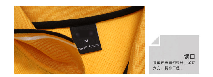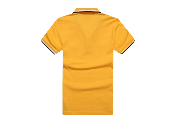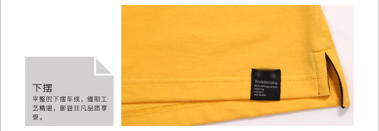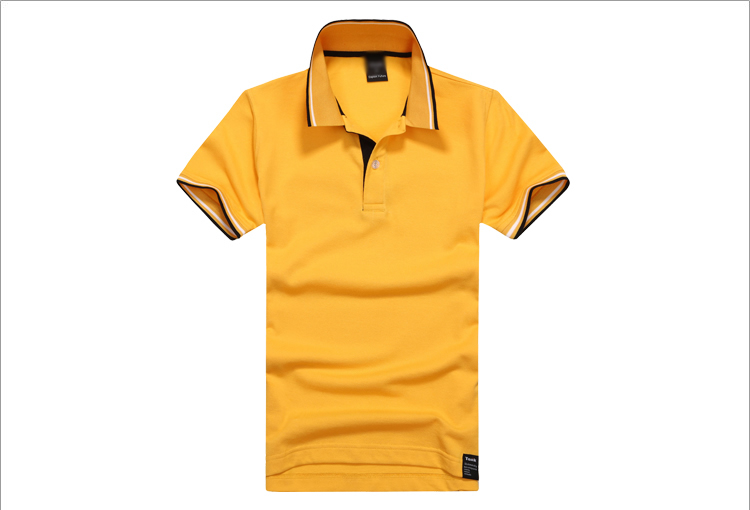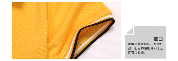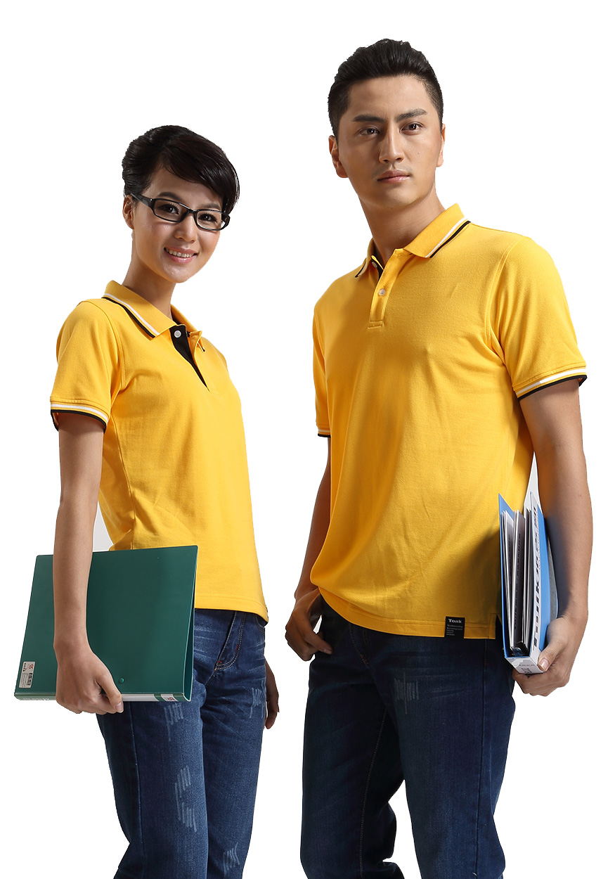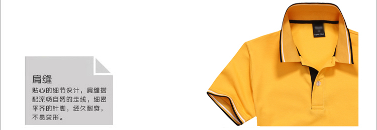 > 嫩黃色珠地純棉POLO衫,領(lǐng)袖間條撞色,男女時(shí)尚t恤衫制作