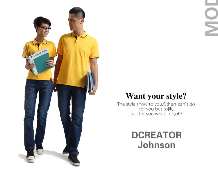 嫩黃色珠地純棉POLO衫,領(lǐng)袖間條撞色,男女時(shí)尚t恤衫制作