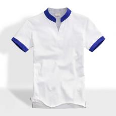 白色立領(lǐng)短袖男款T恤衫 珠地精梭純棉料