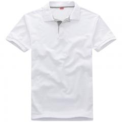 白色時(shí)尚翻領(lǐng)短袖T恤衫定制 精梭絲光棉材質(zhì)