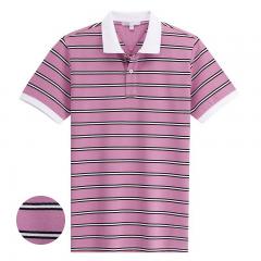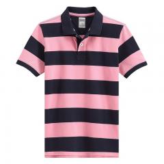 【定制】淡紅色細條紋POLO衫 男士翻領短袖加工訂制