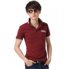【定制】翻領短袖棗紅色男士T恤衫加工定制