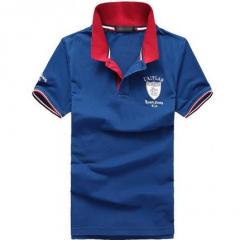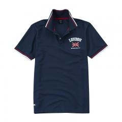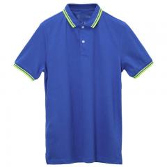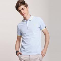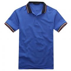 藍色男款短袖棉質(zhì)POLO衫 領袖撞色款式制作