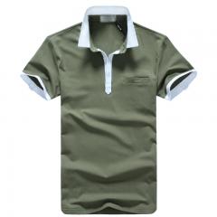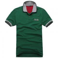 綠色男款短袖精梭棉T恤衫 雙領(lǐng)時(shí)尚款式定做