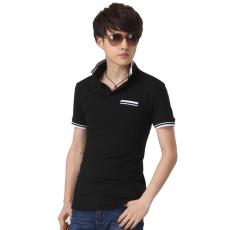 黑色男士翻領短袖POLO衫定做 領袖撞色款式