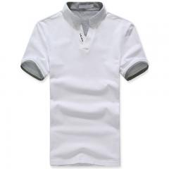【定制】白色小立領(lǐng)時尚男士T恤衫加工 純棉材料