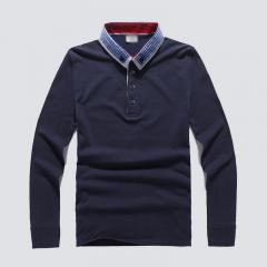 寶藍色男款短袖精梭棉材質(zhì)POLO衫 免費設(shè)計
