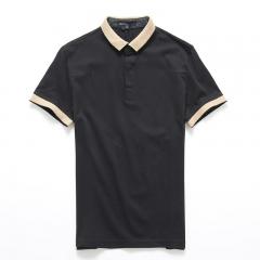 【定制】黑色時尚潮流T恤衫男款短袖 領(lǐng)袖撞色款式
